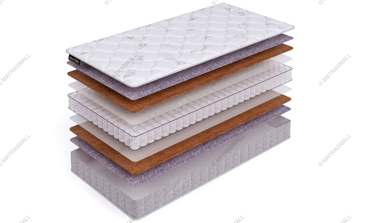 В составе матраса используются современные гипоаллергенные материалы – кокосовая койра и хлопчатобумажное полотно.