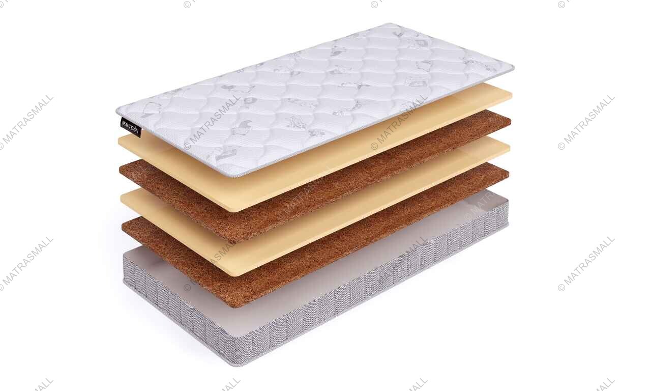 Кокосовая койра – состоит из кокосовых волокон, пропитанных латексом. Износостойкий материал придает поверхности упругость и жесткость, обладает превосходными ортопедическими и эксплуатационными свойствами.