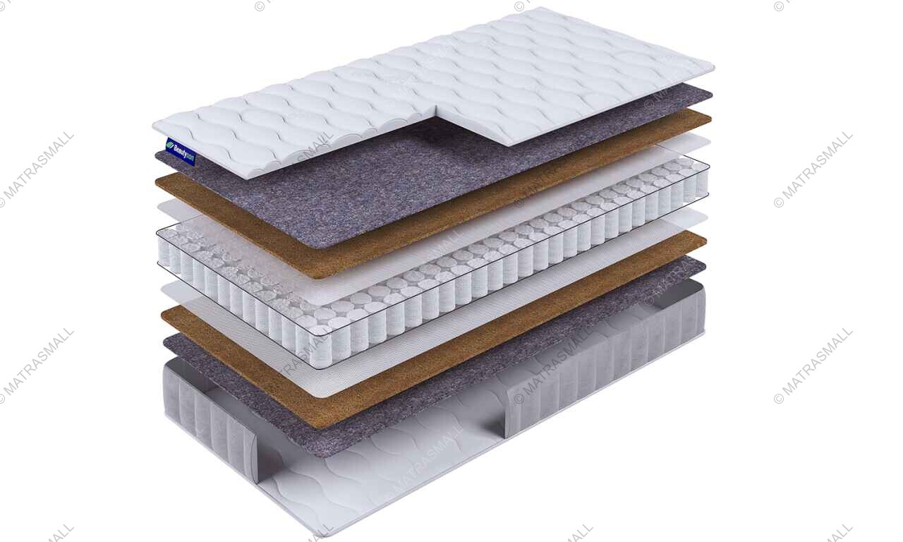 В составе матраса используются современные гипоаллергенные материалы – кокосовая койра и хлопчатобумажное полотно.