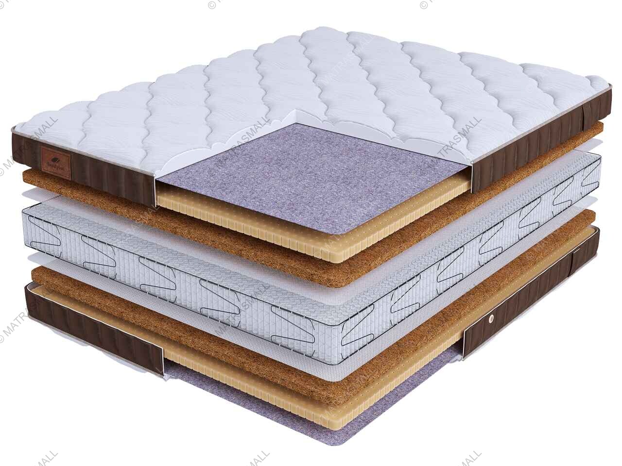 Кокосовая койра – состоит из кокосовых волокон, пропитанных латексом. Износостойкий материал придает поверхности упругость и жесткость, обладает превосходными ортопедическими и эксплуатационными свойствами.