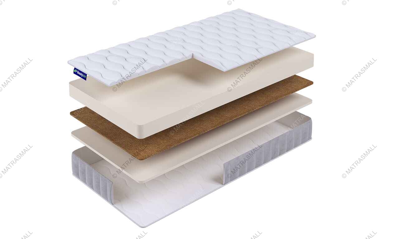 Кокосовая койра – состоит из кокосовых волокон, пропитанных латексом. Износостойкий материал придает поверхности упругость и жесткость, обладает превосходными ортопедическими и эксплуатационными свойствами.