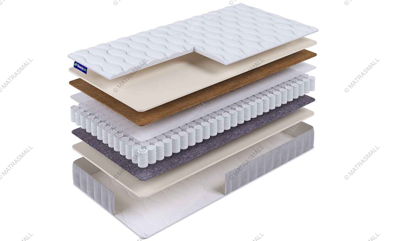 Кокосовая койра – состоит из кокосовых волокон, пропитанных латексом. Износостойкий материал придает поверхности упругость и жесткость, обладает превосходными ортопедическими и эксплуатационными свойствами.