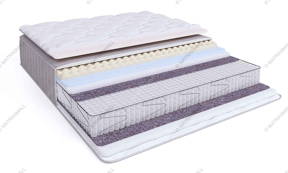 Нижний слой матраса изготовлен из прочного и гипоаллергенного материала — холлофайбера. Этот материал обладает анатомическими свойствами и служит защитным барьером между пружинным блоком и ламелями, продлевая срок службы матраса.