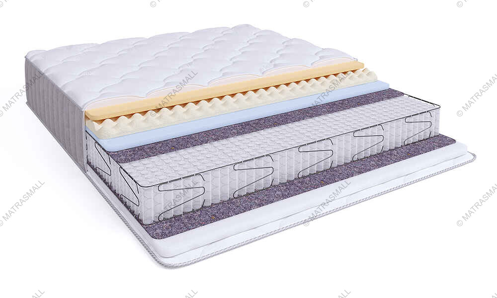 Особенности конструкции независимого пружинного блока S1200 гарантируют индивидуальную точечную поддержку и оптимальное положение тела во время сна, предотвращая колебания и проседания матраса. Бесклеевой метод сборки позволил исключить применение поролонового короба и увеличить количество пружин на 50 % по сравнению с аналогами других брендов. По периметру установлены вертикальные Z-spring пружины из легированной стали. Такая конструкция обеспечивает дополнительную прочность и надежность матраса, без риска деформации.