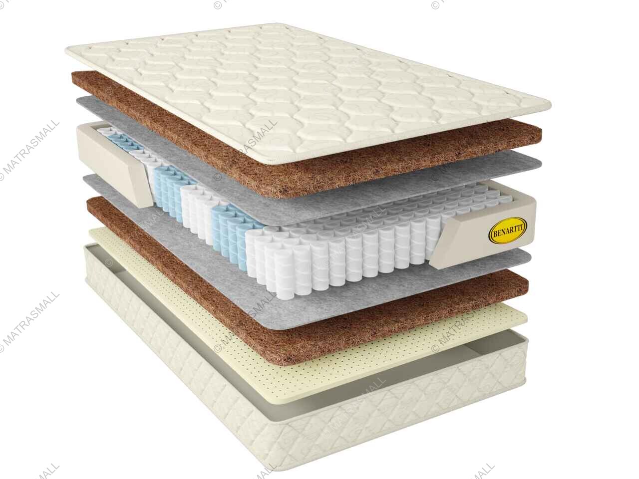 Для дополнительной защиты пружинного блока добавлен изоляционный слой из термовойлока, разделяющий наполнители матраса и пружины.