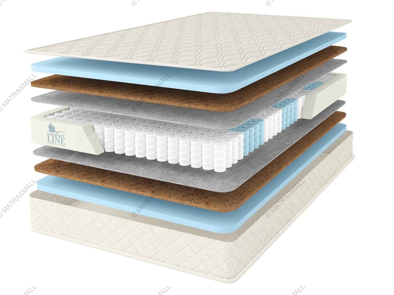 Природный материал латексированная кокосовая койра, не вызывает аллергических реакций и добавляет необходимую жесткость и упругость матрасу.