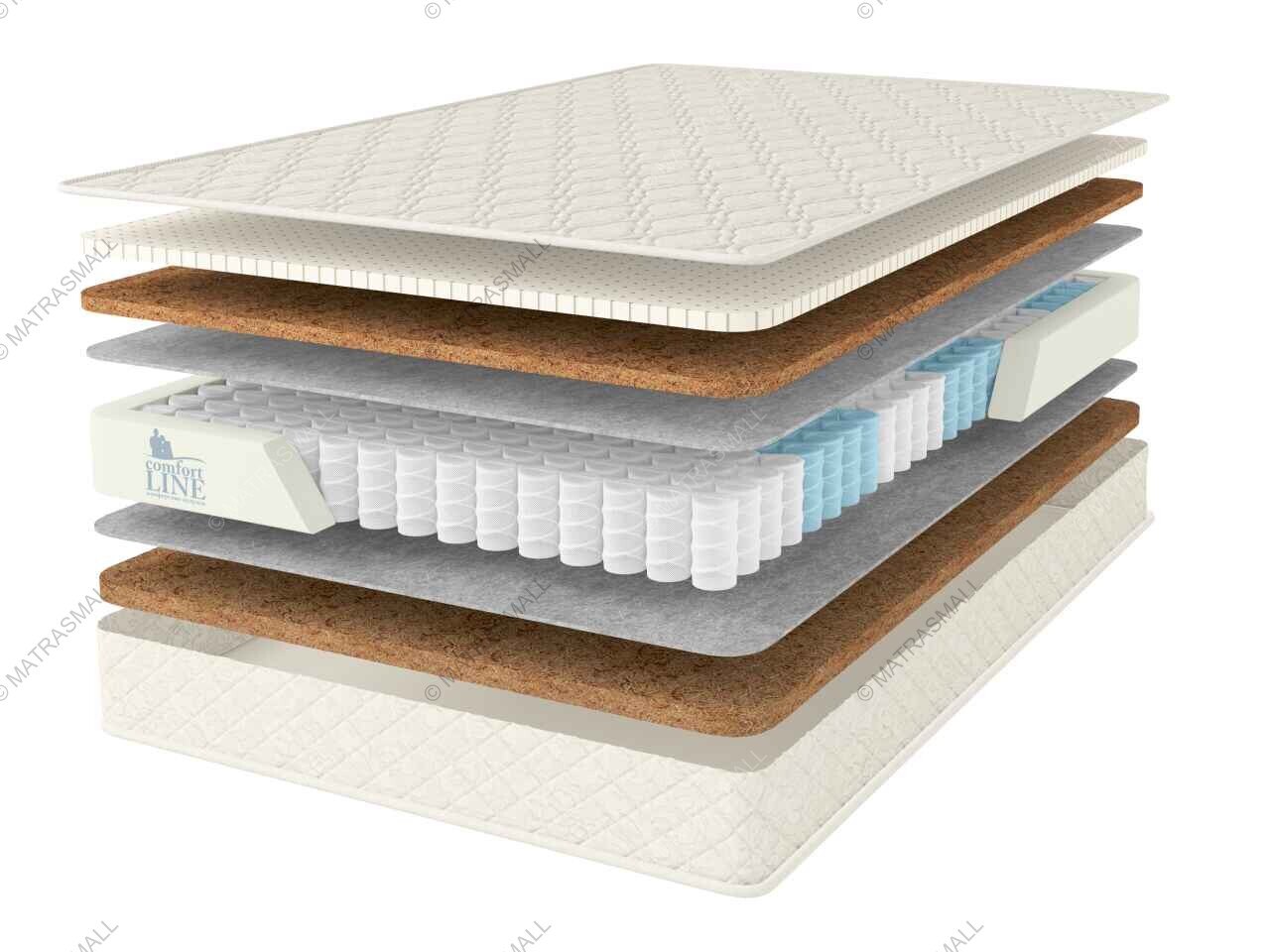 Природный материал латексированная кокосовая койра, не вызывает аллергических реакций и добавляет необходимую жесткость и упругость матрасу.