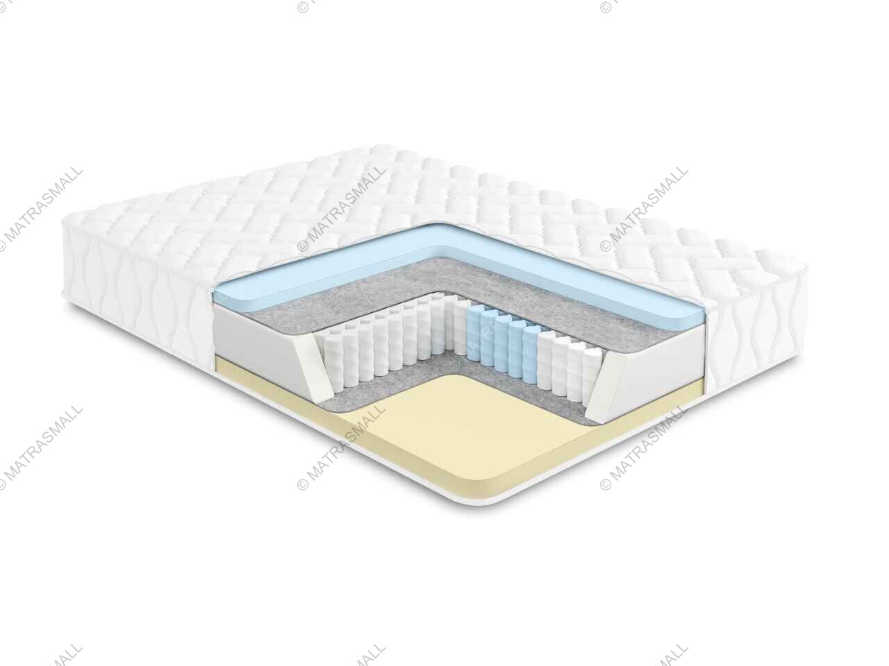 Пружинный матрас в основе которого многозональный независимый пружинный блок 1000 пружин на спальное место обеспечивает ортопедическую поддержку и комфорт во время сна. Независимые пружины подстраиваются под формы человека, потому что каждая пружина находится в отдельном кармашке и обеспечивает равномерное распределение веса.