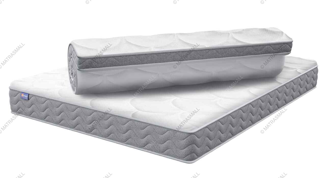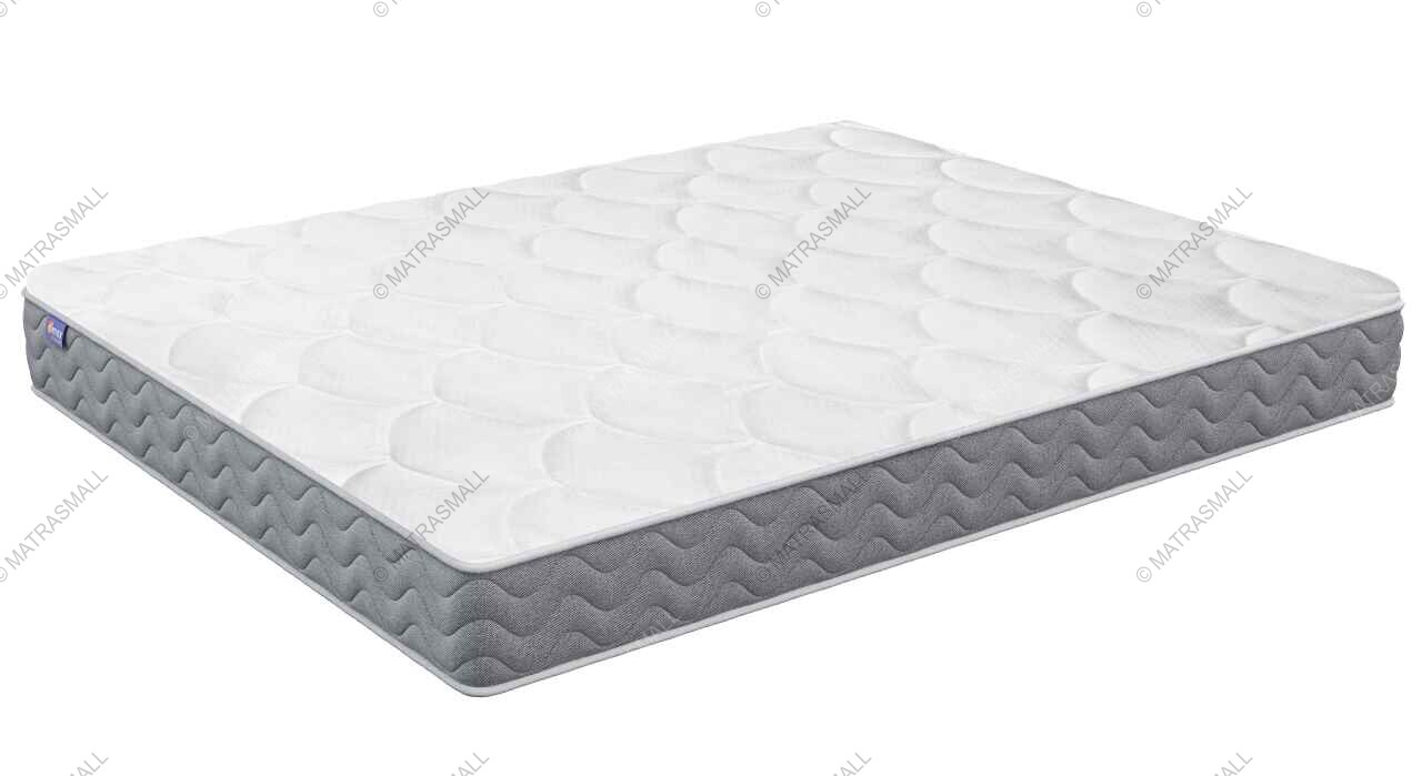 Матрас выполнен в двуцветной гамме со стильным серым бурлетом из рогожки.
