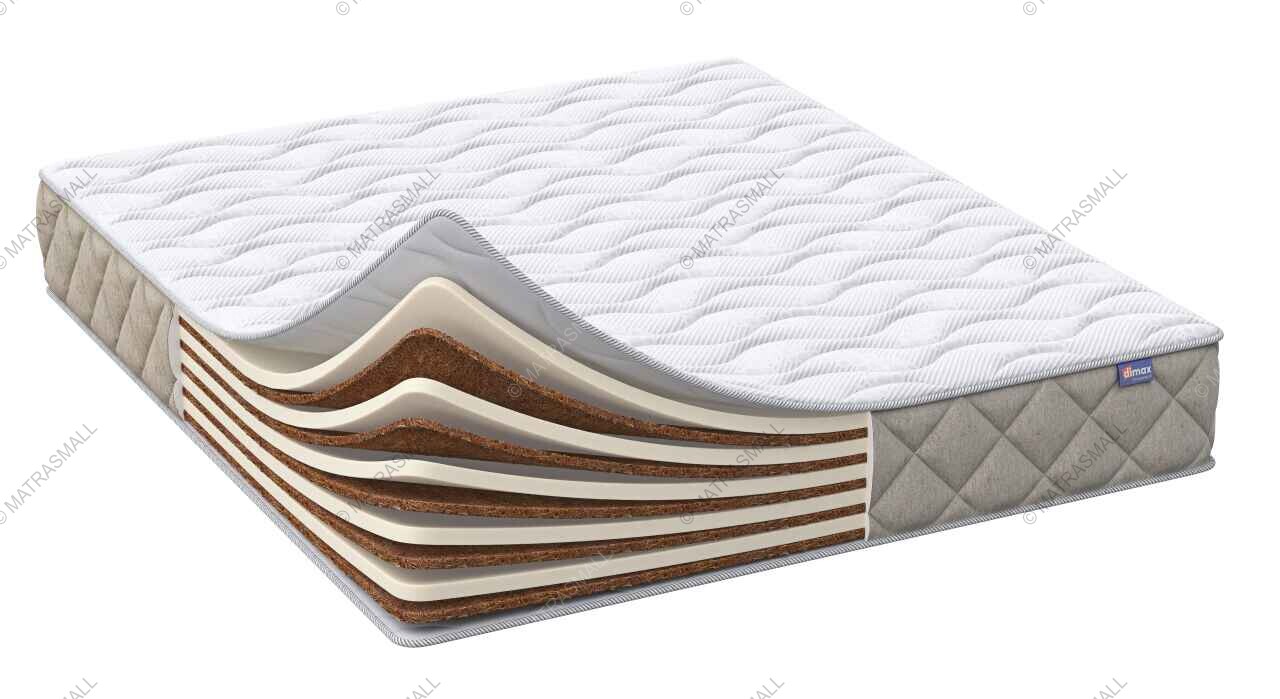 10-слойный беспружинный состав — 5 пластов искусственного латекса для адаптивного обволакивания и 5 слоёв кокосовой койры для правильной поддержки спины и общей прочности матраса.