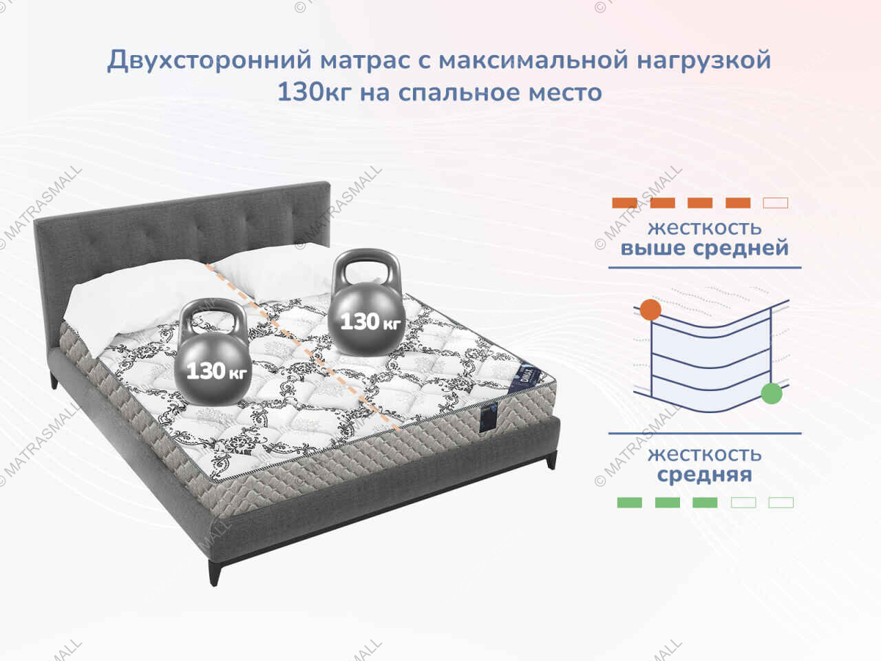 Две спальные поверхности: модель предлагает две стороны жёсткости — выше средней и среднюю. Просто перевернув матрас, вы легко адаптируете его под свои предпочтения комфорта.
