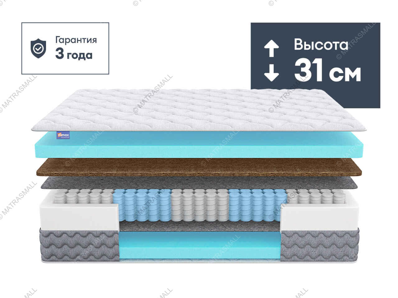 Матрас Димакс Биг Лайт Хард — это высокотехнологичная модель с двусторонней жёсткостью, которая оптимальна для тех, кто ценит устойчивую и надёжную поддержку во время сна. Матрас базируется на 5-зональном пружинном блоке, что позволяет ему лучше распределять нагрузку и аккуратнее поддерживать тело.