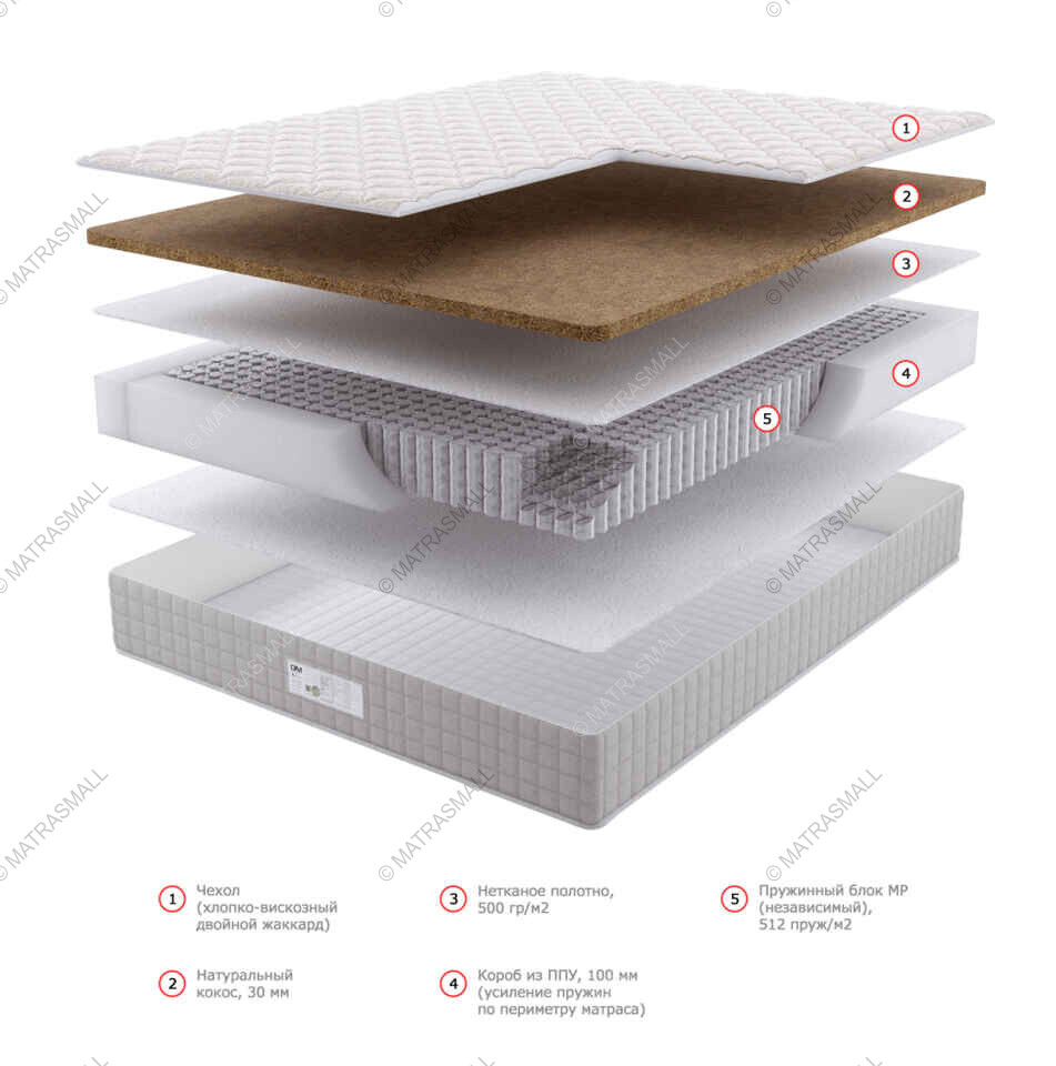 Матрас изготавливается с несъемным чехлом из натурального хлопко-вискозного двойного жаккарда, простеганного на синтепоне.