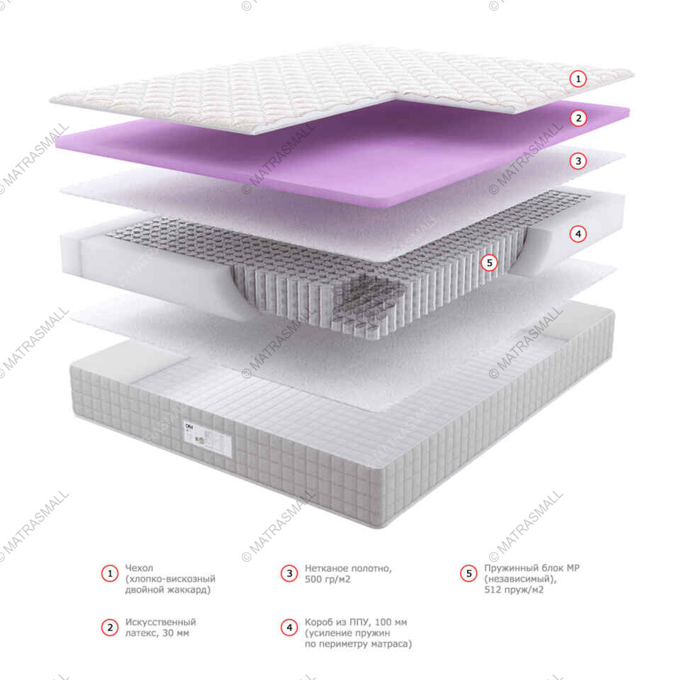 В качестве наполнителя в матрасе используется искусственный латекс — мягкий и экономичный материал.