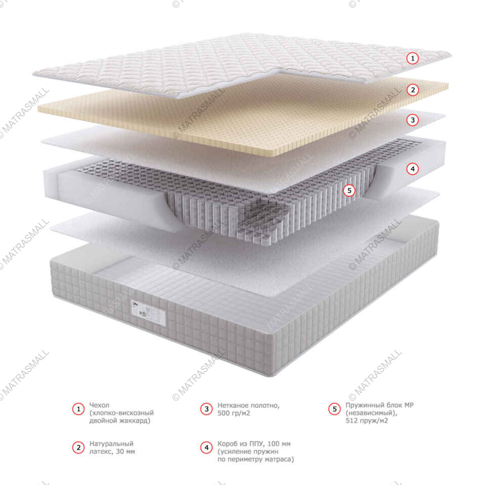 В качестве наполнителя в матрасе используется натуральный латекс — мягкий и экономичный материал.