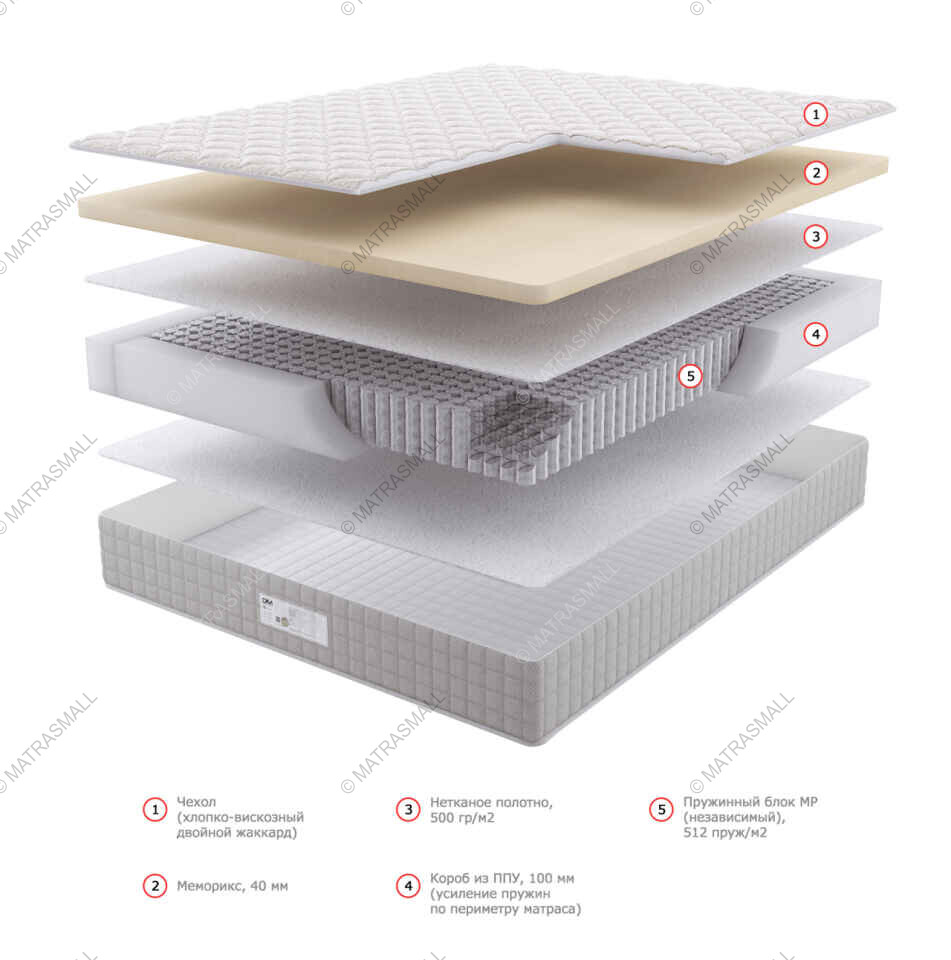 В качестве наполнителя в матрасе используется Memorix — мягкий и экономичный материал.
