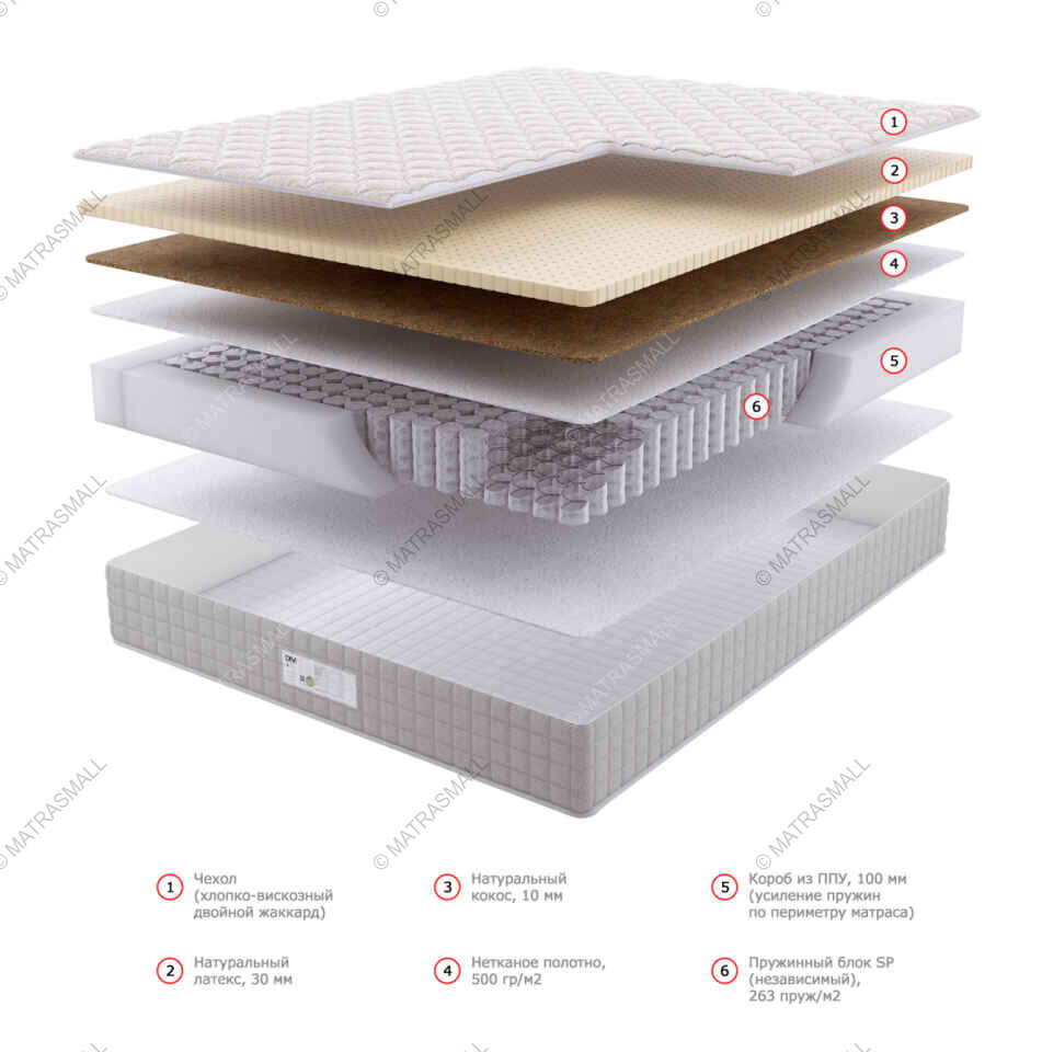 В качестве наполнителя в матрасе используется натуральный латекс и кокос.