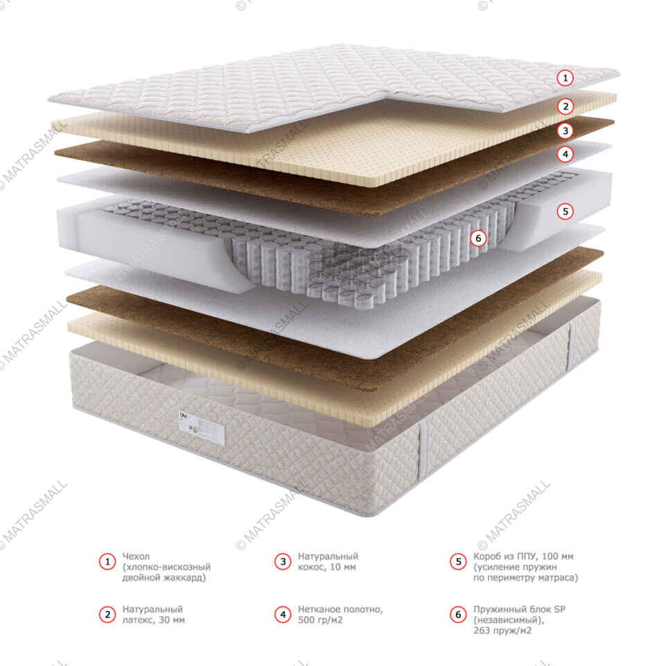 Матрас классической средней жесткости. В каждой из сторон используется мягкий натуральный латекс и тонкий слой упругой кокосовой койры. Это позволяет получить умеренный по свойствам матрас, который отлично подойдет тем, кто так и не определился с требуемой жесткостью сторон. Использование наполнителей из натуральных материалов обеспечивает повышенный срок службы матраса.