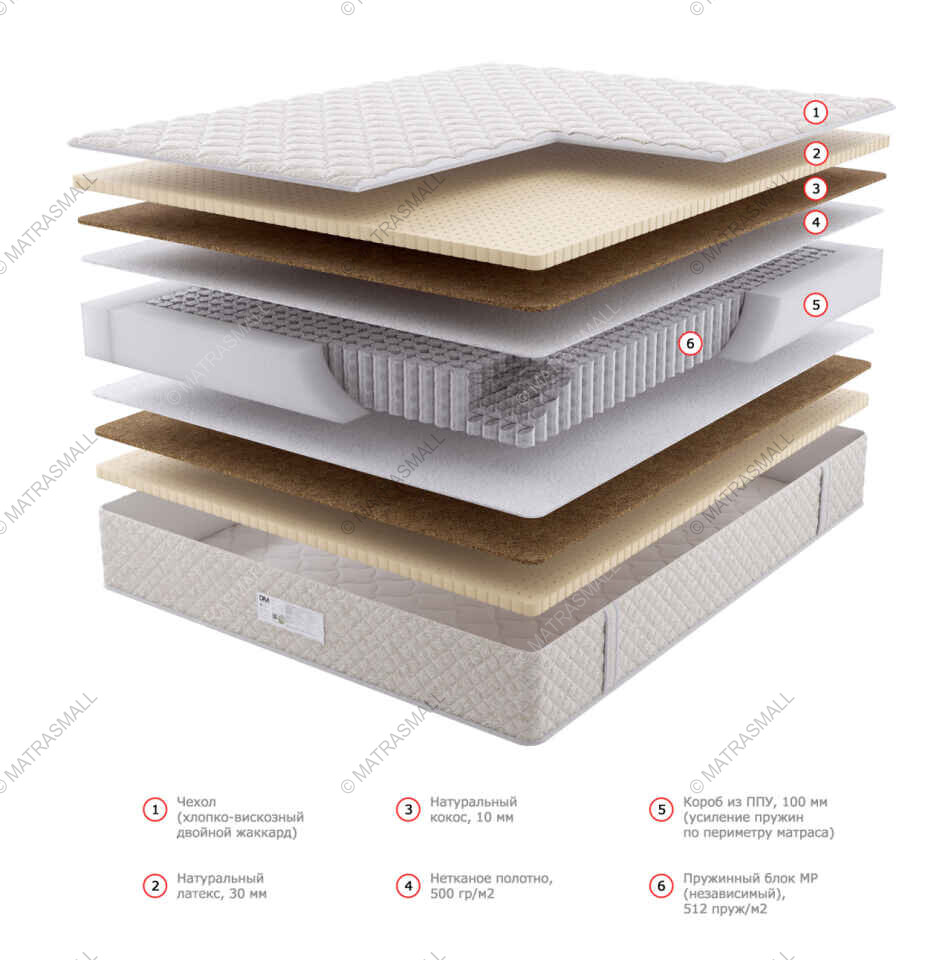 Высококлассный матрас классической средней жесткости. В каждой из сторон используется мягкий натуральный латекс и тонкий слой упругой кокосовой койры. Это позволяет получить умеренный по свойствам матрас, который отлично подойдет тем, кто так и не определился с требуемой жесткостью сторон. Использование наполнителей из натуральных материалов обеспечивает повышенный срок службы матраса.