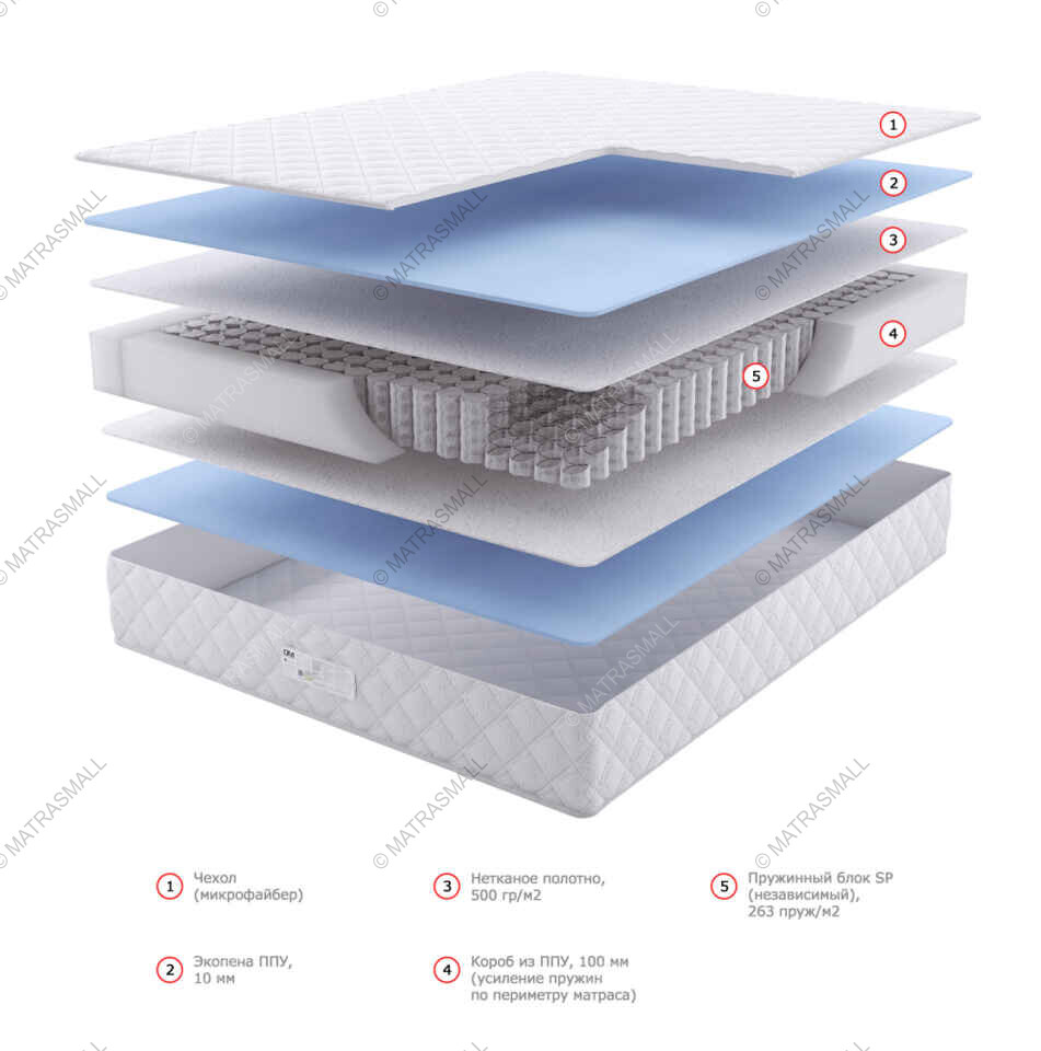 В качестве системы поддержки используется независимый пружинный блок SP (TFK) 263 пруж. кв.м. Матрас обладает высокими ортопедическими свойствами.