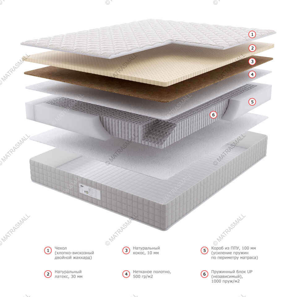 Уно 6 UP — односторонний ортопедический матрас на основе блока независимых пружин, придающих матрасу превосходные анатомические свойства.