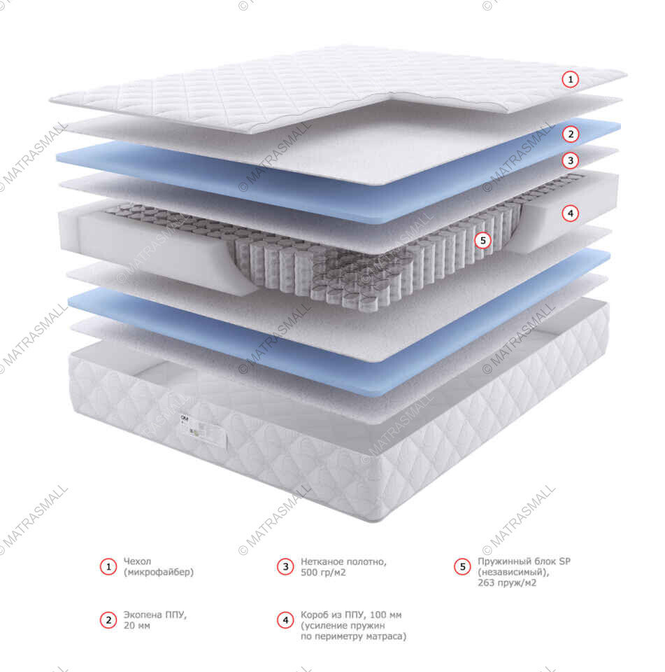 Тип матраса:пружинный, независимые пружины