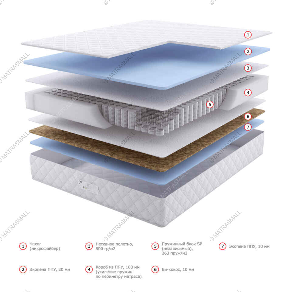 Тип матраса:пружинный, независимые пружины