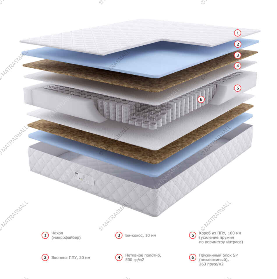 Жесткий матрас с одинаковыми сторонами. В основе блок независимых пружин TFK 263 пруж./кв.м.