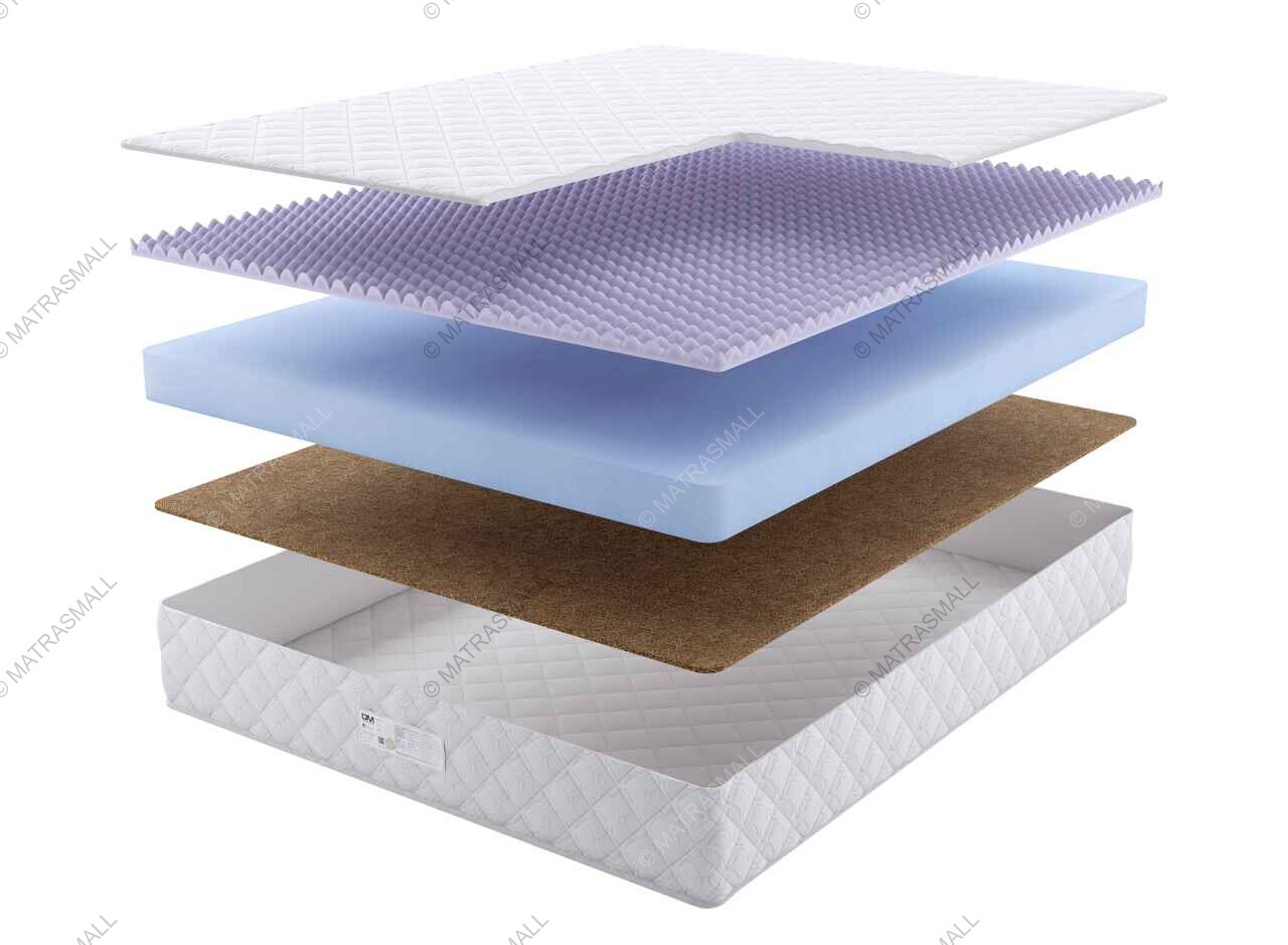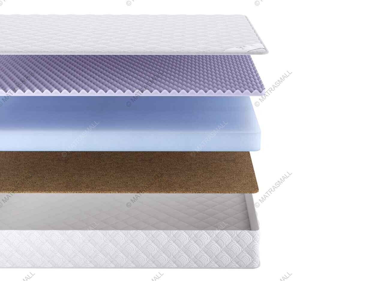 С одной стороны матраса используется дополнительный слой рельефного искусственного латекса толщиной 3 см. Рельефная поверхность обеспечивает расслабляющий микромассажный эффект во время сна, способствуя лучшему кровообращению. С другой стороны размещен слой жесткого и упругого натурального кокоса толщиной 1 см.