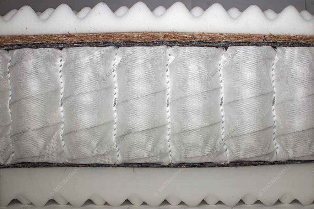 По обе стороны пружинного блока расположен изоляционный слой - термовойлока, который предотвращает черезмерный износ основных наполнителей матраса.