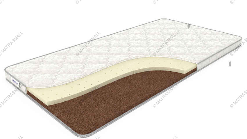 Наполнитель из латексированной кокосовой койры толщиной 30 мм увеличивает жёсткость матраса. Перфорированный латекс на натуральной основе уменьшает жёсткость спального места и препятствует проникновению влаги. Защищает от загрязнения и способствует продлению срока службы матраса.