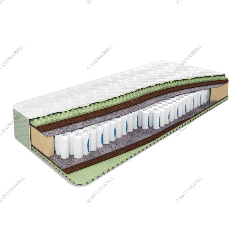 Дополнительно, кокосовый слой толщиной 1 см с обеих сторон матраса придаёт необходимый уровень жёсткости и оказывает требуемую поддержку позвоночнику.