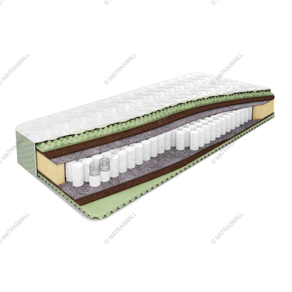 Дополнительно, кокосовый слой толщиной 1 см с обеих сторон матраса придаёт необходимый уровень жёсткости и оказывает требуемую поддержку позвоночнику.