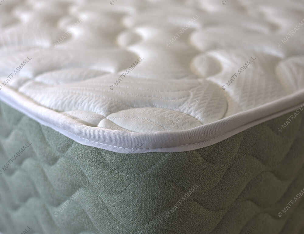 С одной стороны матраса расположен слой пены ErgoFoam Memory с эффектом памяти. Материал 2 в 1. Во-первых это меморикс - создающий эффект памяти формы при контакте с теплом и как следствие способствует релаксации и снятию напряжения. Во-вторых - рельефная поверхность создаёт эффект лёгкого микромассажа, способствующий более быстрому засыпанию.