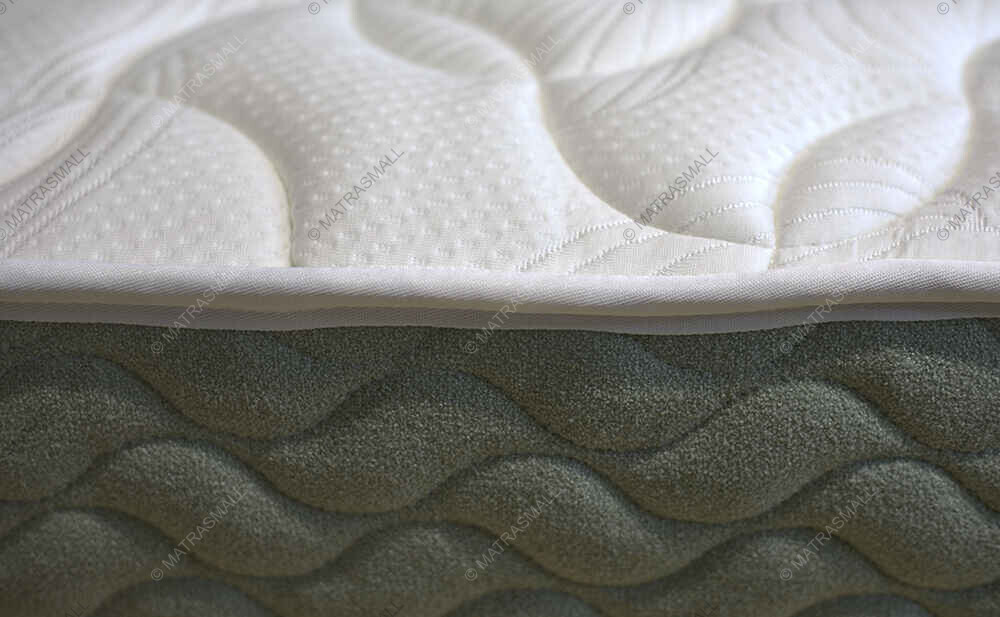 Чехол выполнен из объемного трикотажа со стежкой на холлконе и ППУ. Поверхность - хорошо вентилируется, приятна на ощупь, присутствует лёгкий волнистый рельеф, напоминающий волну, а так же имеет презентабельный внешний вид. Боковина обшита тканью букле с волнистой стёжкой по длине матраса.