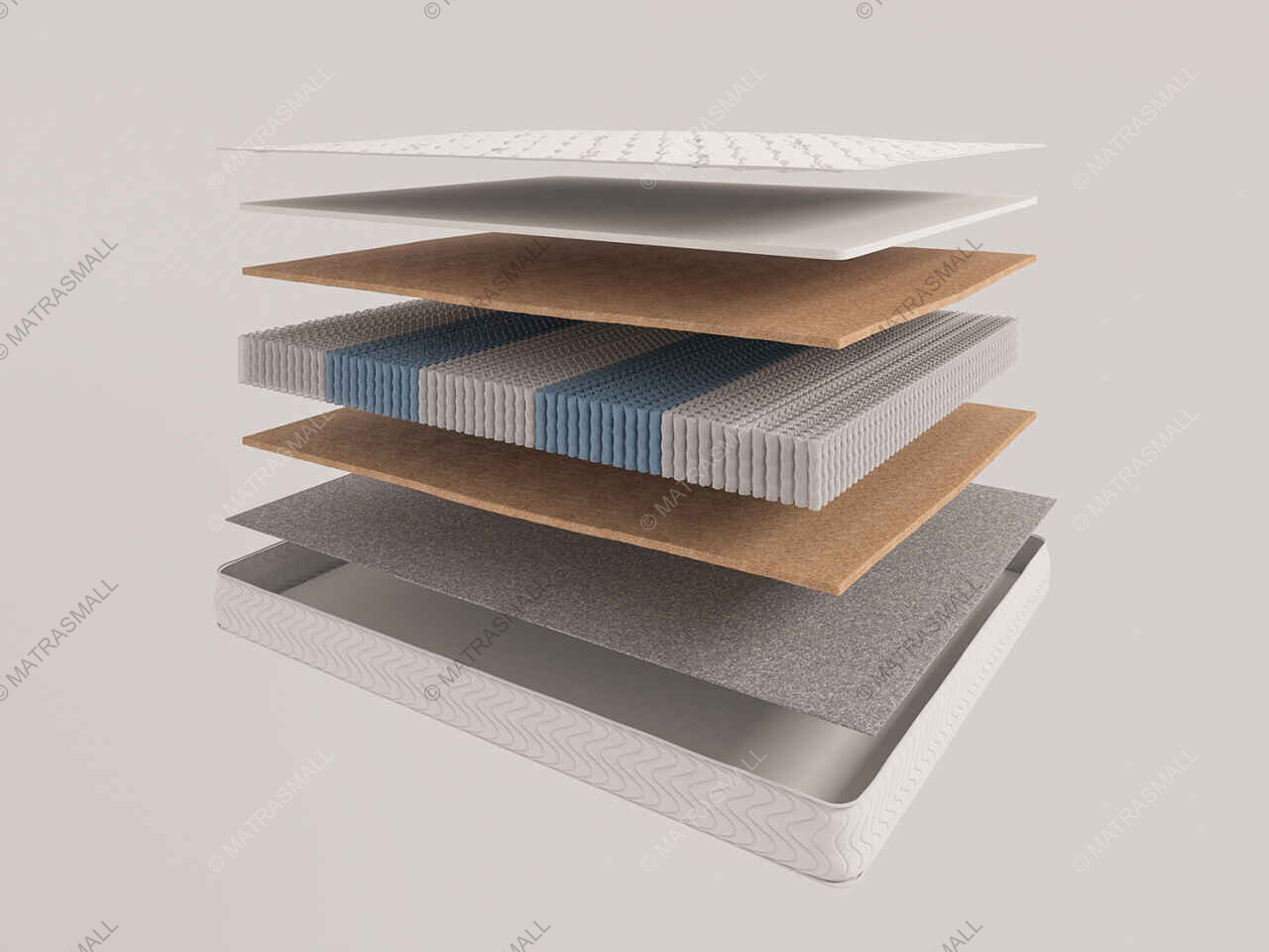 Покрытие матраса – хлопковый трикотаж, стёганный с волокнами хлопка, шерсти и бамбука, что обеспечивает естественный микроклимат спального места и способствует благоприятному термическому режиму во время сна.