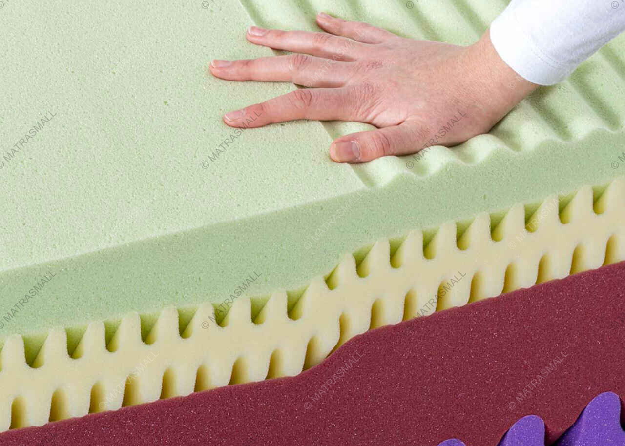 Особая волновая нарезка нижнего несущего слоя делит блок на анатомические зоны придаёт матрасу оптимальную эргономику и адаптацию матраса в местах значительных весовых нагрузок.