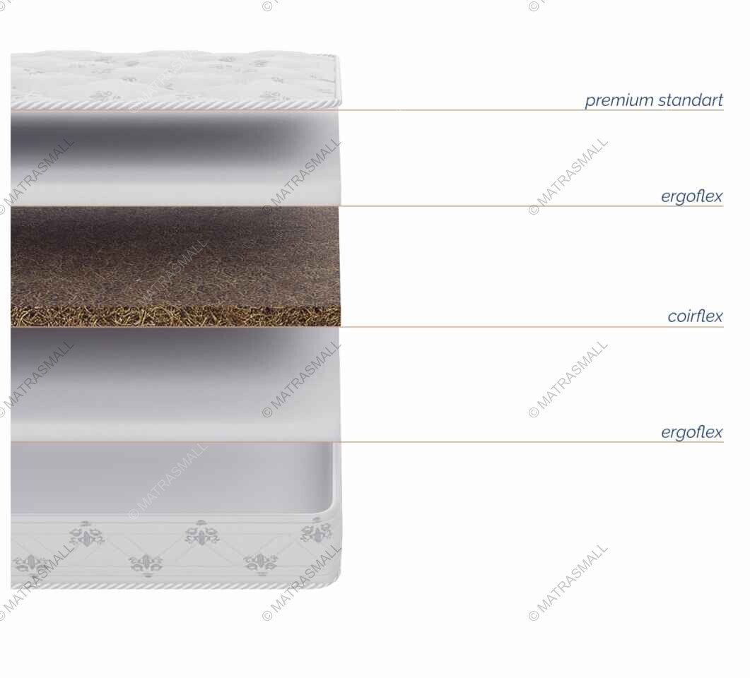 Coirflex – комфортный слой из натуральной кокосовой койры, пропитанный натуральным латексом (50% волокно кокосового ореха, 50% латекса). Гибкий и упругий, обладает ортопедическим эффектом и устойчив к нагрузкам. Придаёт жесткость матрасу.