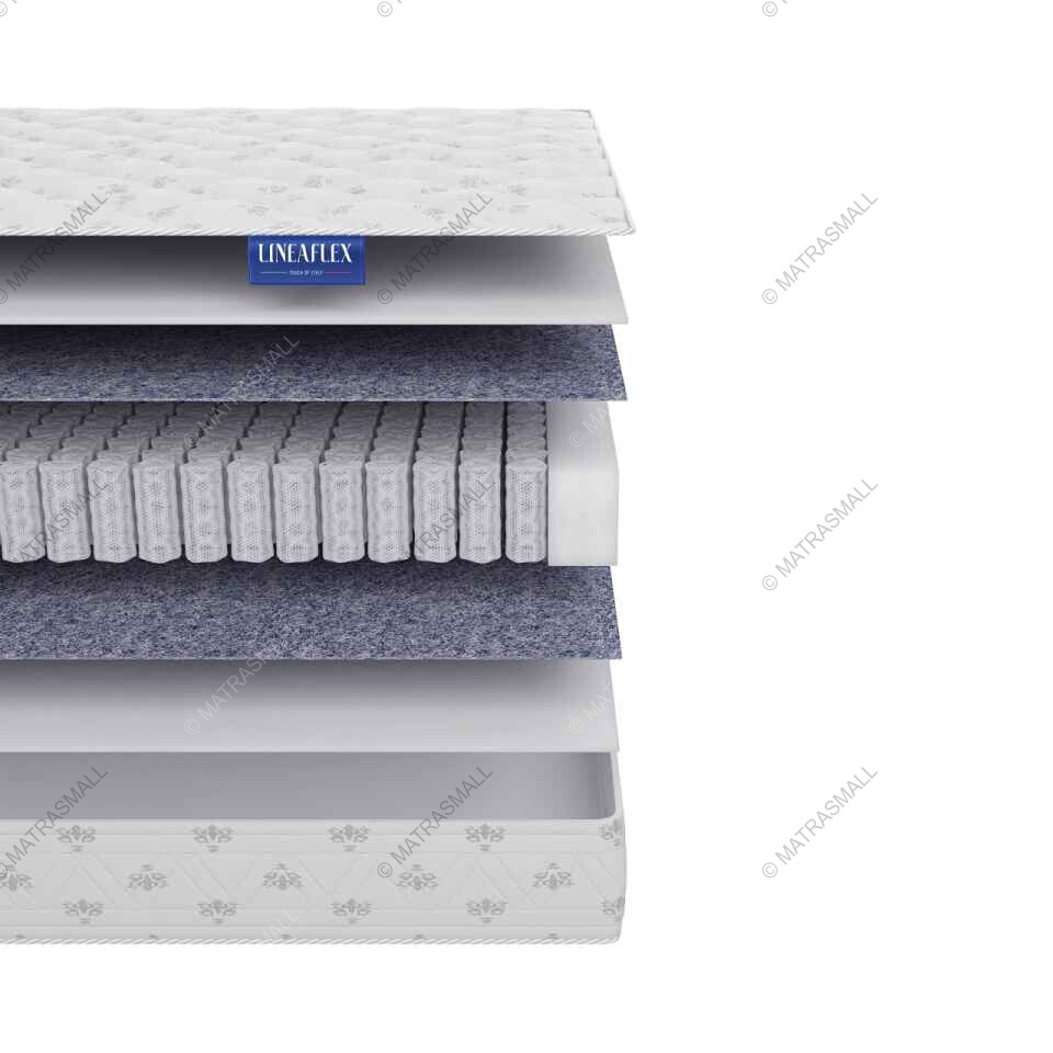 Наполнитель матраса материал ergoflex – высокоэластичная пена на водной основе, имеет среднюю жёсткость, не деформируется со временем. Обеспечивает 100% циркуляцию воздуха за счёт открытой молекулярной структуры, позволяет поддерживать идеальную температуру спального места, отводить лишнюю влагу и запахи.