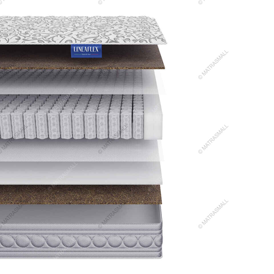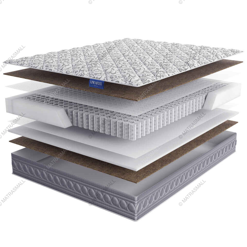 По обеим сторонам матраса проложены слои coirflex – комфортный слой из натуральной кокосовой койры, пропитанный натуральным латексом (50% волокно кокосового ореха, 50% латекса). Гибкий и упругий, обладает ортопедическим эффектом и устойчив к нагрузкам. Придаёт жесткость матрасу.