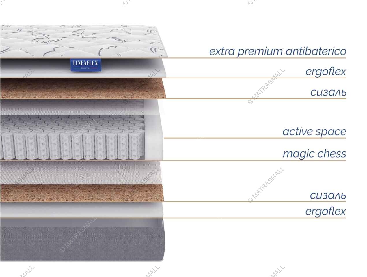 Magic Chess - пружинный блок шахматной сборки с 650 независимыми пружинами на спальное место. Один из самых жестких пружинных блоков Lineaflex. Более плотное расположение пружин усиливает упругость и несущую способность матраса, обеспечивая тем самым повышенную поддержку в зонах, где весовая нагрузка наиболее высока.