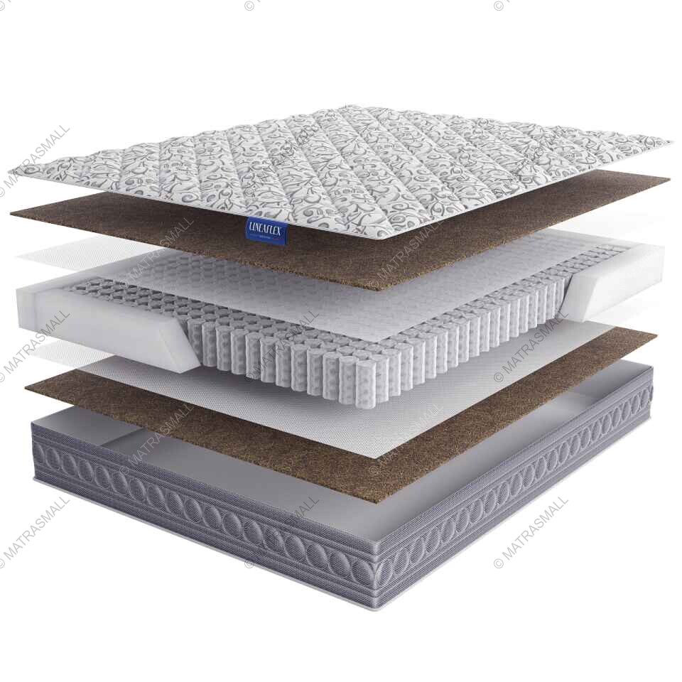 Обе стороны матраса состоят из материала Coirflex. Это комфортный слой из натуральной кокосовой койры, пропитанный натуральным латексом (50% волокно кокосового ореха, 50% латекса). Гибкий и упругий, обладает ортопедическим эффектом и устойчив к нагрузкам. Придаёт жесткость матрасу.
