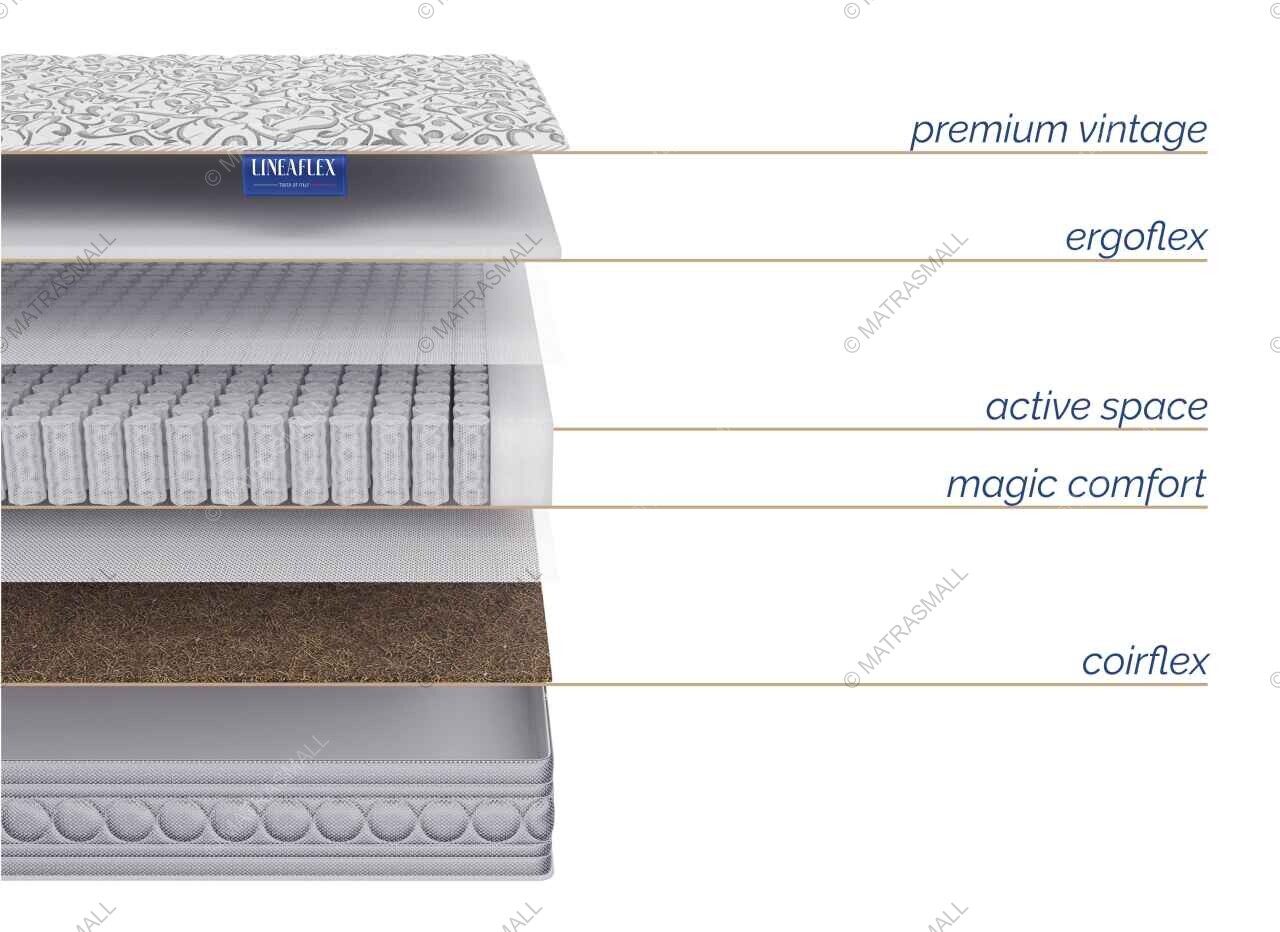 Чехол Premium Vintage – система комфорта, состоящая из износостойкого жаккарда и гипоаллергенного нетканного наполнителя Skyfiber, обладающего повышенной терморегуляцией.