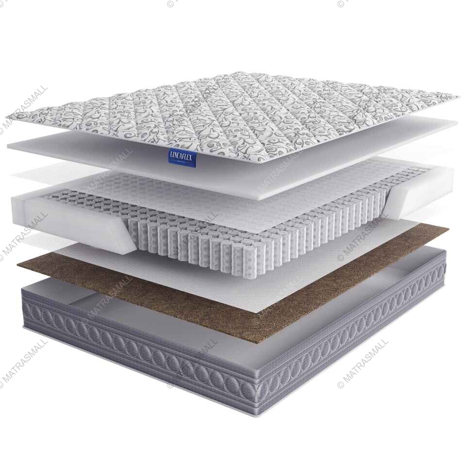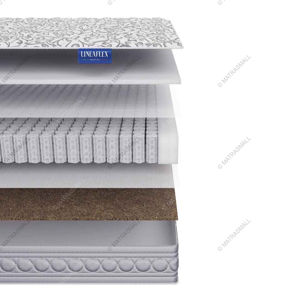С одной стороны матраса расположен слой coirflex – комфортный слой из натуральной кокосовой койры, пропитанный натуральным латексом (50% волокно кокосового ореха, 50% латекса). Гибкий и упругий, обладает ортопедическим эффектом и устойчив к нагрузкам. Придаёт жесткость матрасу.
