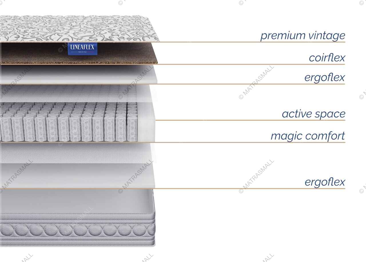 Чехол Premium Vintage – система комфорта, состоящая из износостойкого жаккарда и гипоаллергенного нетканного наполнителя Skyfiber, обладающего повышенной терморегуляцией.