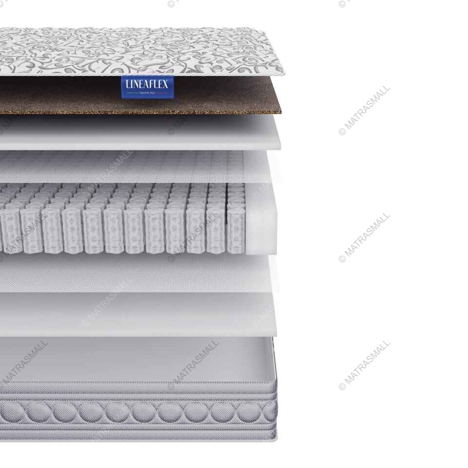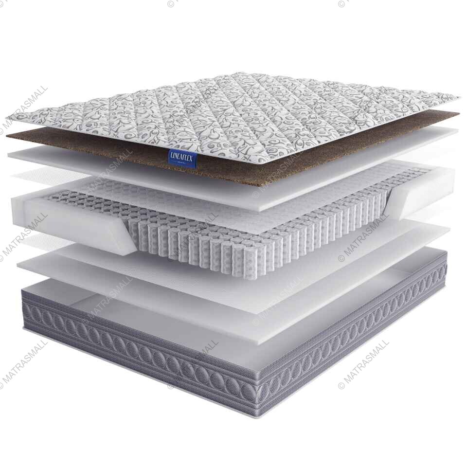 Для повышения жесткости, с одной из сторон проложен слой coirflex – комфортный слой из натуральной кокосовой койры, пропитанный натуральным латексом (50% волокно кокосового ореха, 50% латекса). Гибкий и упругий, обладает ортопедическим эффектом и устойчив к нагрузкам. Придаёт жесткость матрасу.