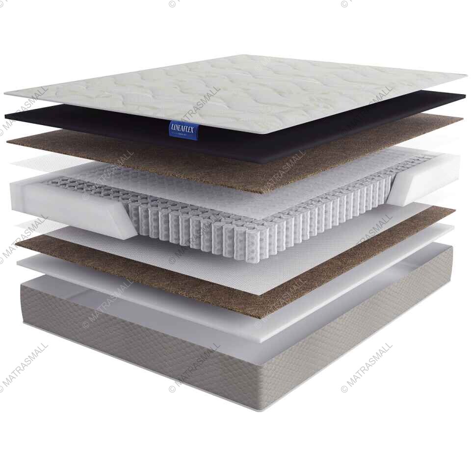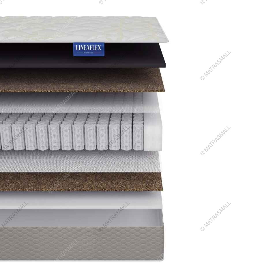 Для повышения жесткости, с обеих сторон проложен слой coirflex – комфортный слой из натуральной кокосовой койры, пропитанный натуральным латексом (50% волокно кокосового ореха, 50% латекса). Гибкий и упругий, обладает ортопедическим эффектом и устойчив к нагрузкам. Придаёт жесткость матрасу.