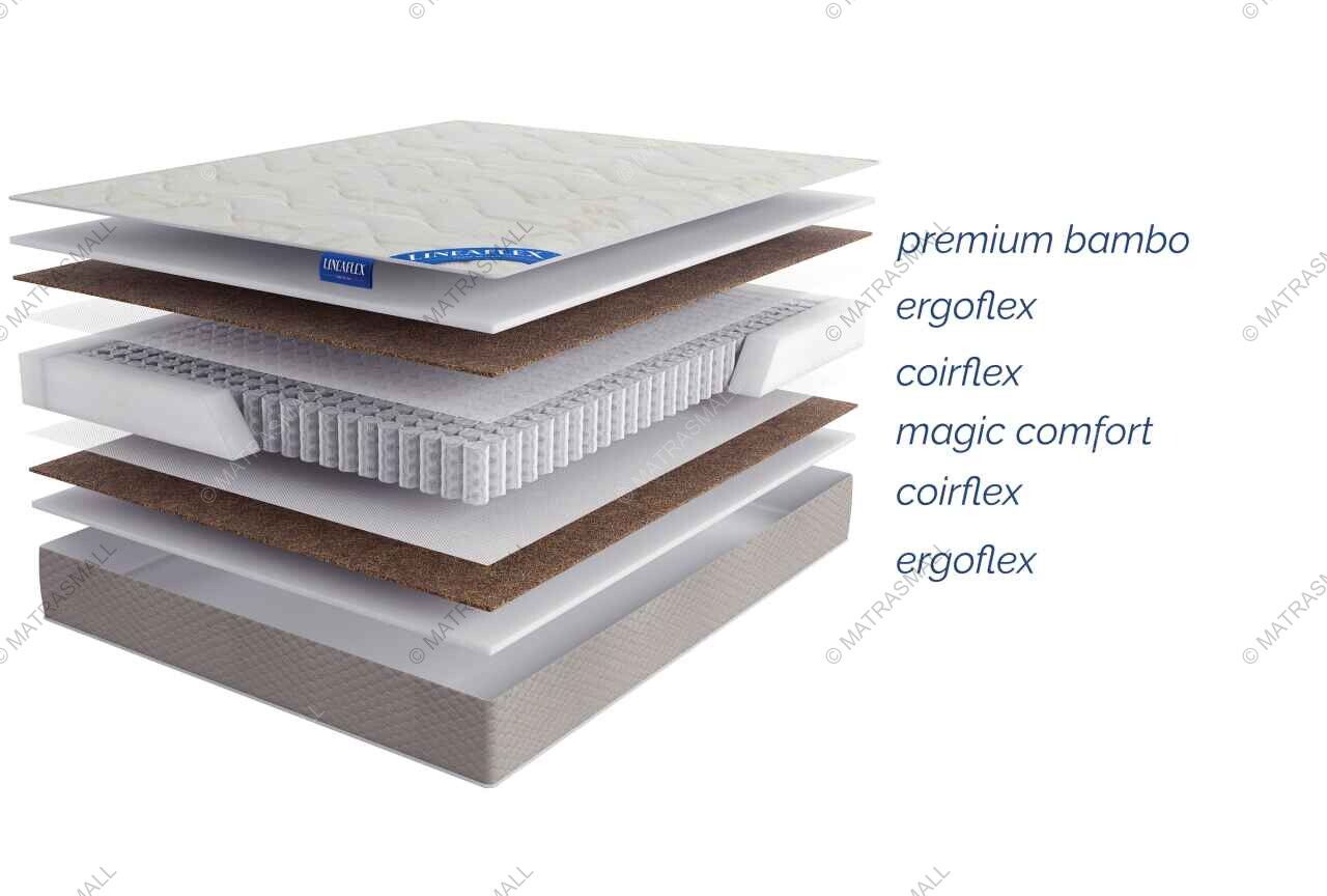 Coirflex – комфортный слой из натуральной кокосовой койры, пропитанный натуральным латексом (50% волокно кокосового ореха, 50% латекса). Гибкий и упругий, обладает ортопедическим эффектом и устойчив к нагрузкам. Придаёт жесткость матрасу.
