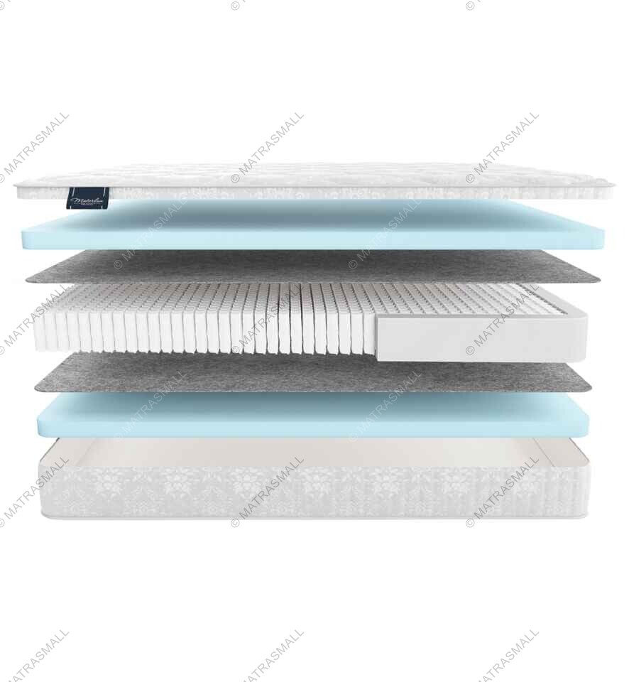 Для этого матраса используется пружинная система Molla Resistente Artificiale 1000. В одном спальном месте расположено более 1000 независимых пружин: каждая из них реагирует на нагрузку индивидуально, мягко и точно адаптируясь к изгибам тела. Такая точечная подстройка помогает сохранить естественное положение позвоночника, независимо от вашей комплекции или позы сна.