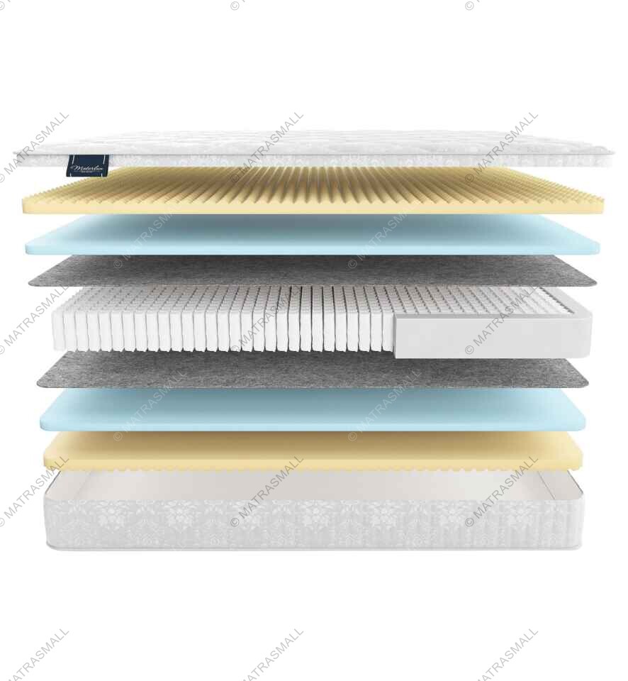 Пружинный матрас с прослойкой из инновационного материала Эрголатекса, обладающего легким массажным эффектом.